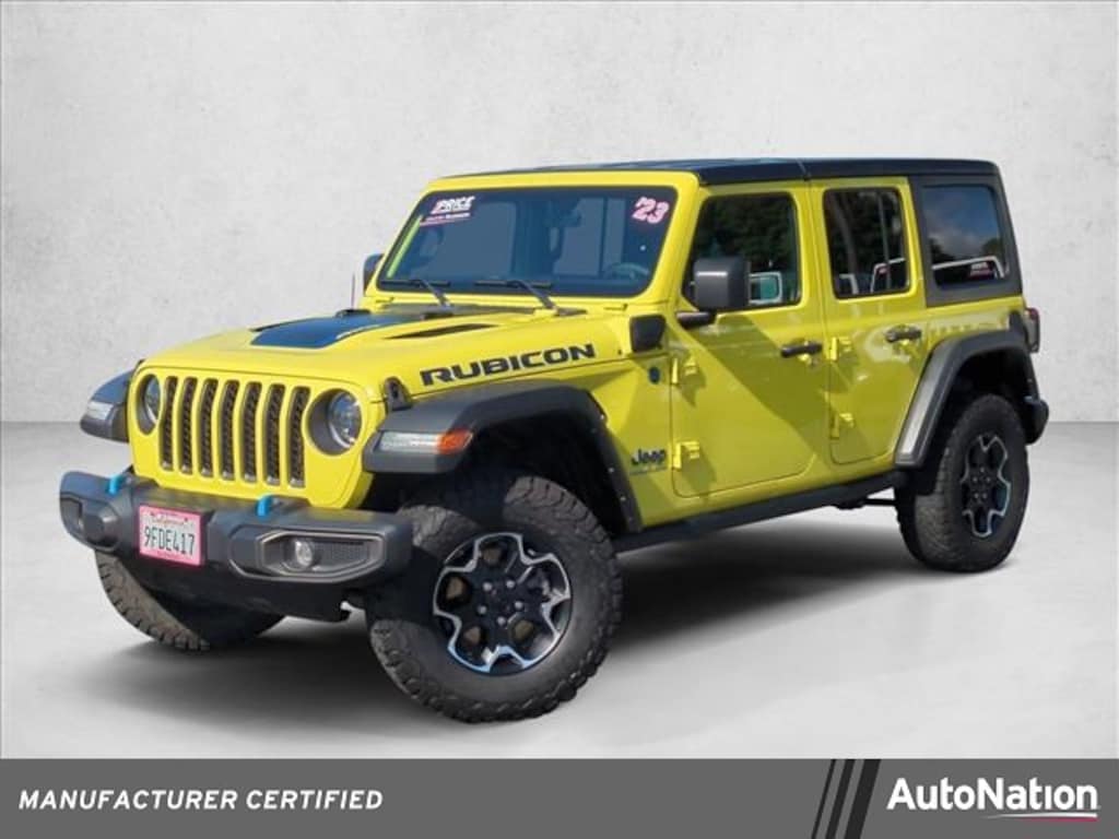 Thank you for visiting another one of AutoNation Chrysler Dodge Jeep Ram Carlsbad's online listings! Please continue for more information on this 2023 Jeep Wrangler 4xe Rubicon with 38,883mi. This Jeep includes: ENGINE: 2.0L I4 DOHC DI TURBO PHEV (STD)4 Cylinder Engine Turbocharged Plug-In Electric/Gas *Note - For third party subscriptions or services, please contact the dealer for more information.*This Jeep Wrangler 4xe Rubicon defines excellence in an SUV. It has the convenience of limitless boundaries paired with city sophistication. This Jeep Wrangler 4xe Rubicon is for the discerning driver who demands the utmost of his vehicle.With 4WD, you can take this 2023 Jeep Wrangler 4xe Rubicon to places roads don't go. It's all about the adventure and getting the most enjoyment out of your new ride. This 2023 Jeep Wrangler 4xe has such low mileage it has been parked more than driven.